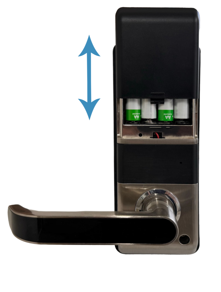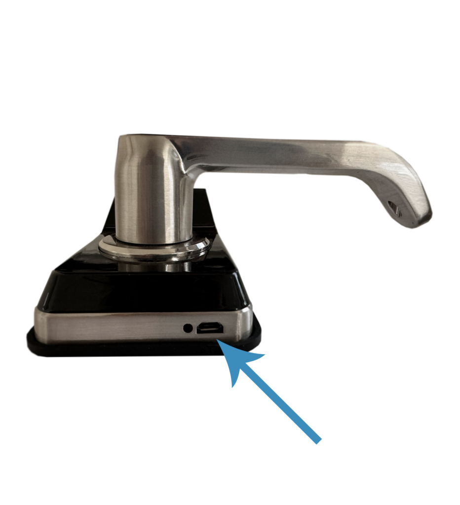 1. Underneath the front face of the lock, you will find a micro USB port. This allows you to connect a power bank to temporarily power the lock and gain entry. Once you’re inside the room, you can remove the battery cover and replace the batteries as needed. If you are using KASaccess or KAS Web Console make sure that you set the clock after every battery replacement.